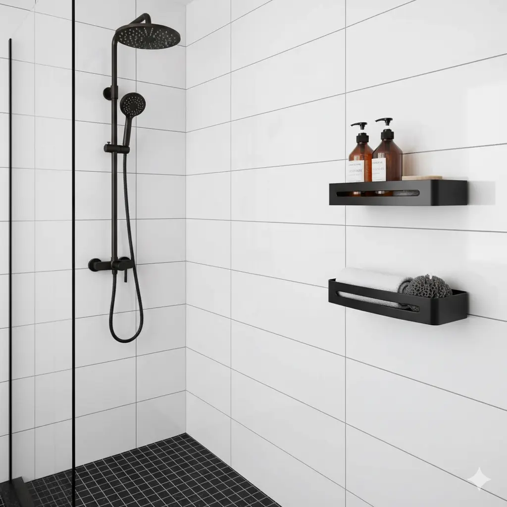 11 ביקורות עבור זוג מדפים ישרים למקלחת | אלומיניום קשיח | 32.5 ס"מ + 4 קולבים | שחור מט | מק"ט 206BL