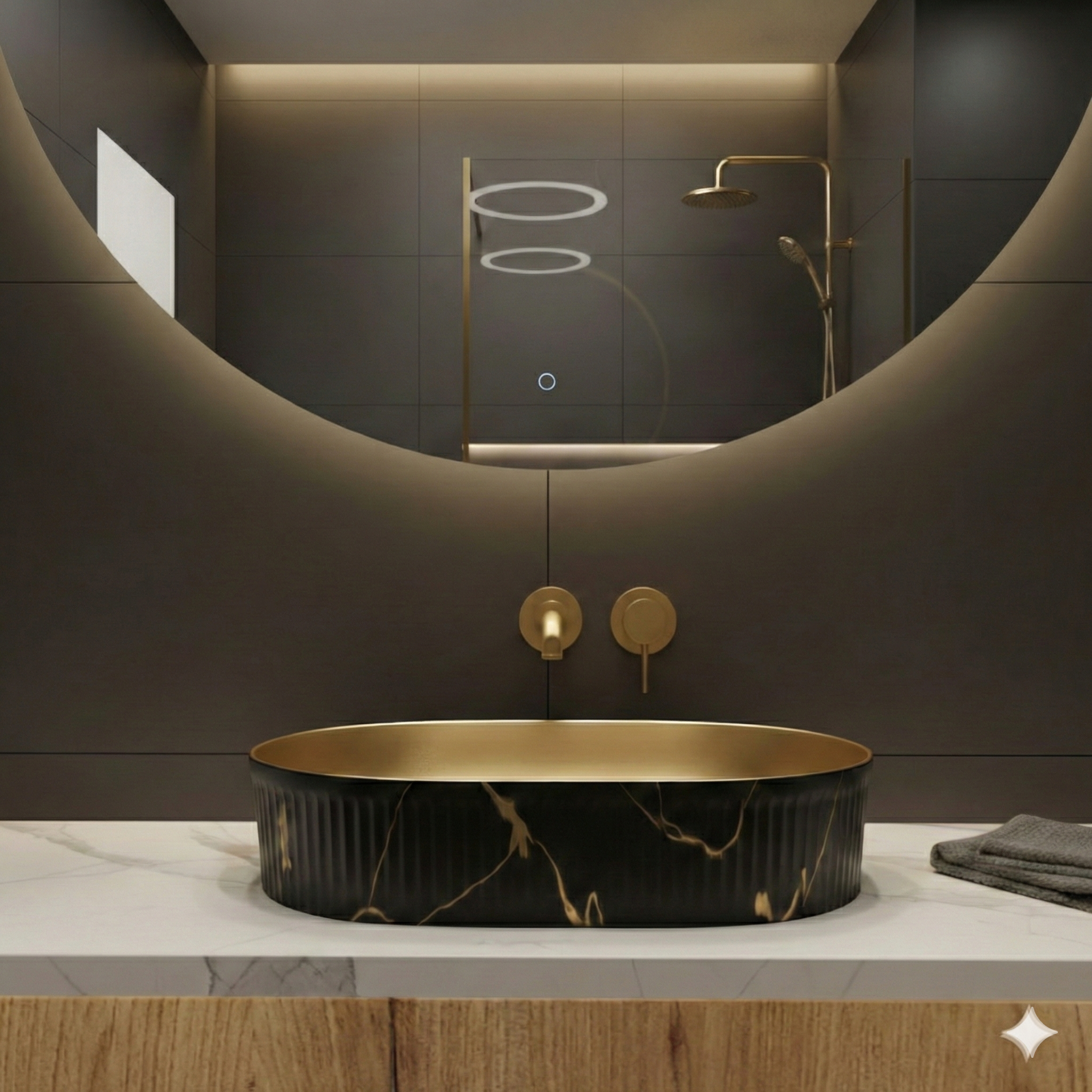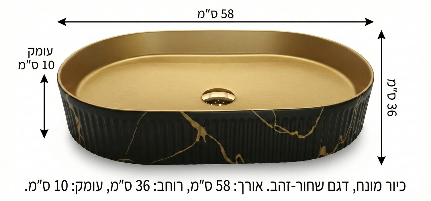כיור חרס מונח זהב מט בשילוב שחור מט | מק"ט 9022