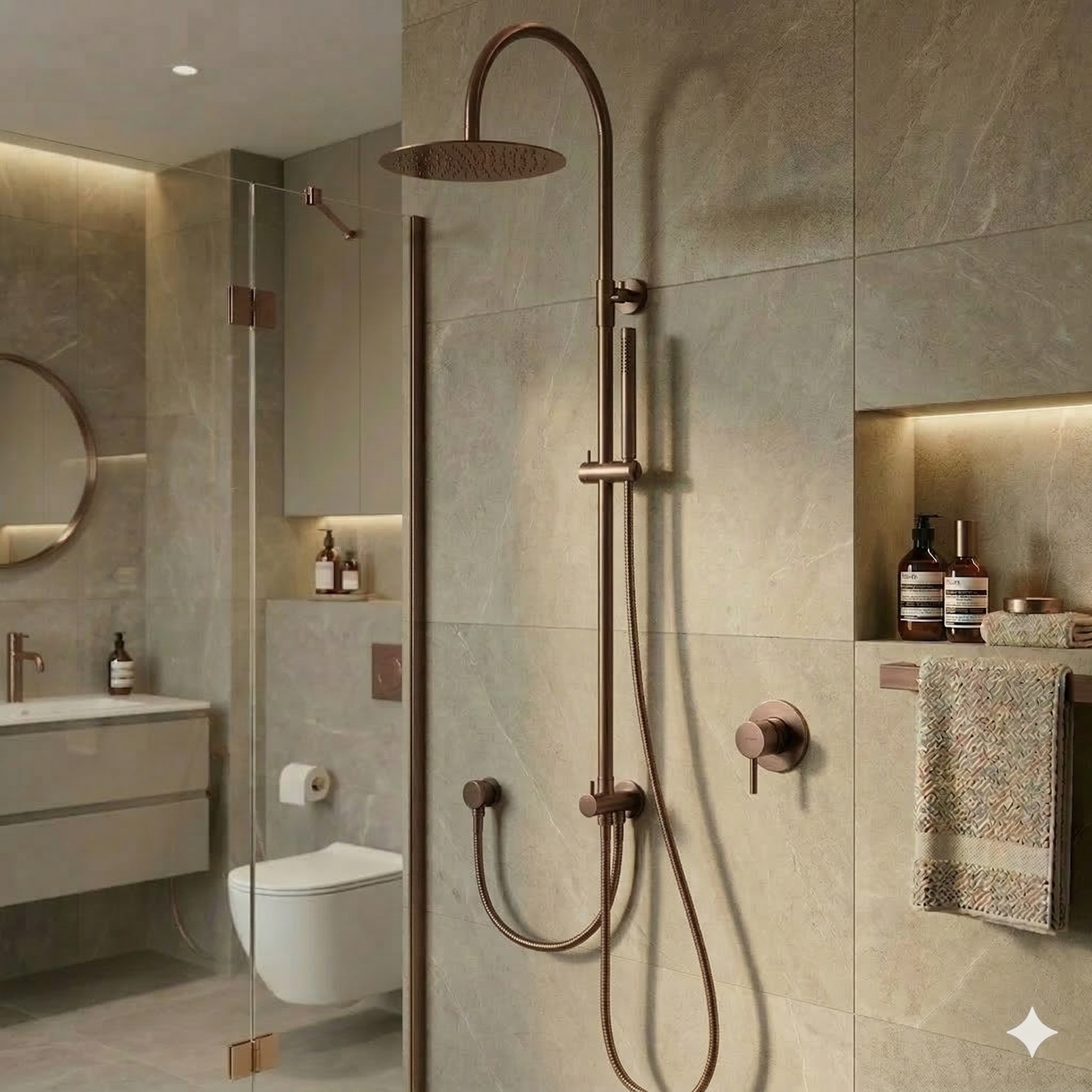 מערכת רחצה יוקרתית מדגם "Rainbow" בגימור רוז גולד מוברש
