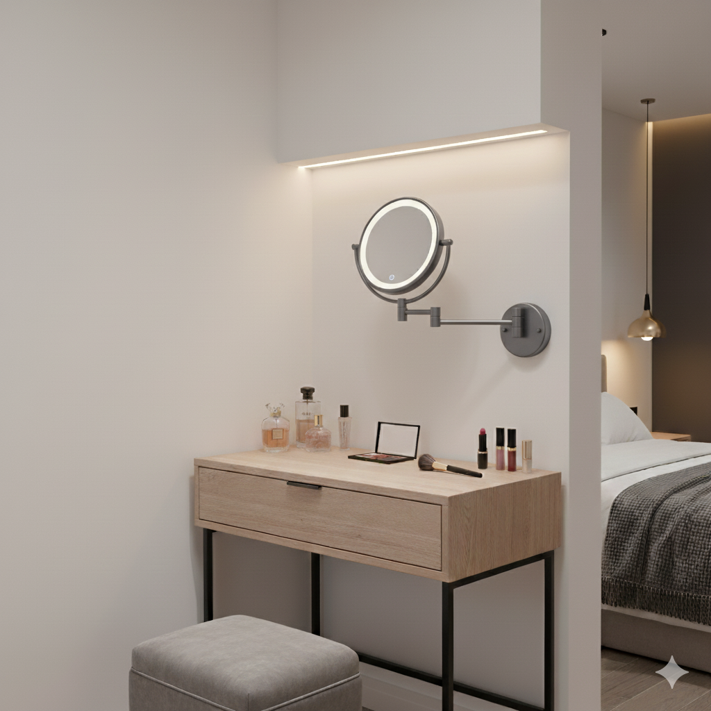 מראת איפור מגדילה למקלחת + תאורת לד | אפור גרפיט | מק"ט 305GR