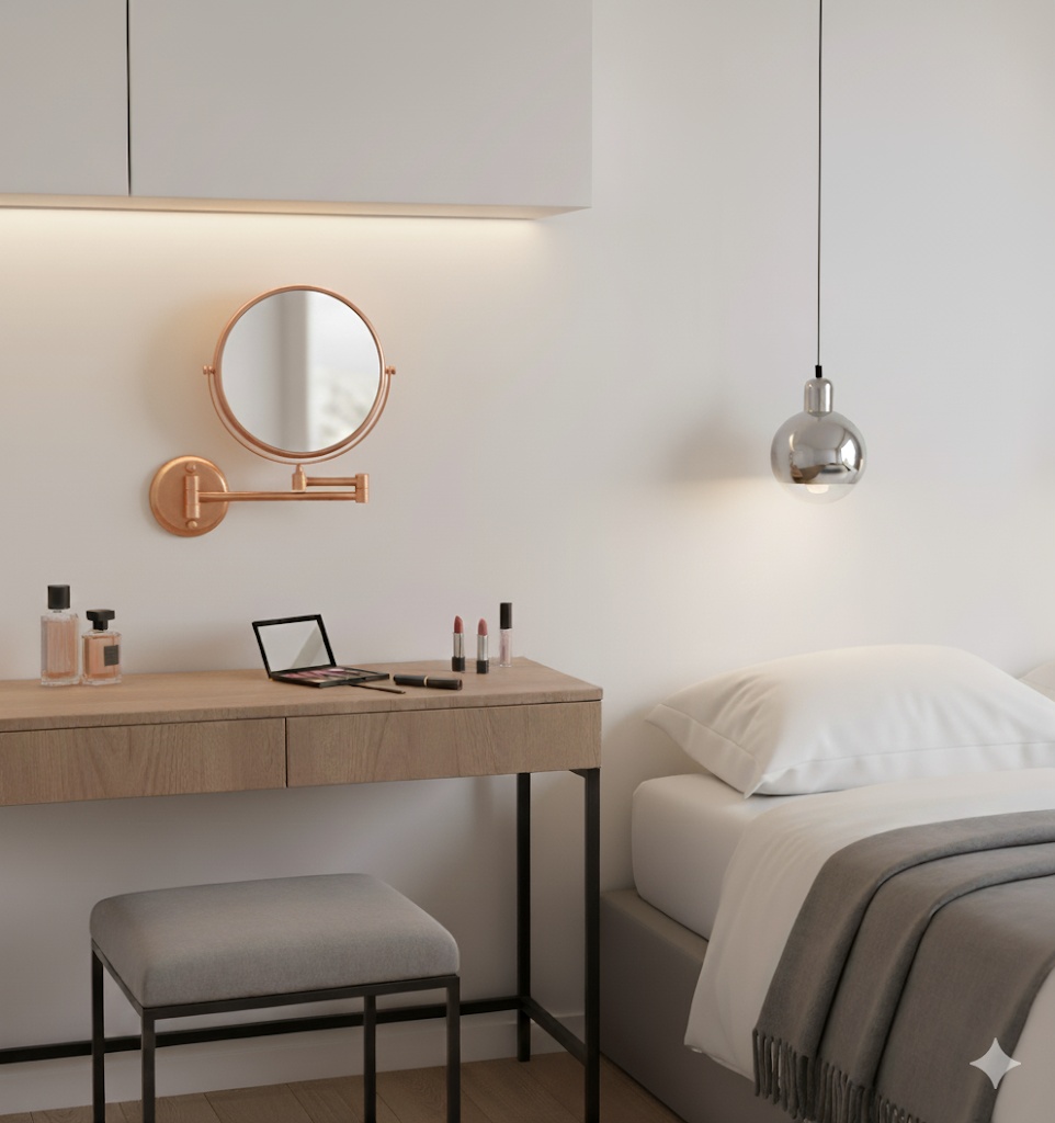 מראת איפור מגדילה למקלחת + תאורת לד | רוז גולד מבריק | מק"ט 305RZM