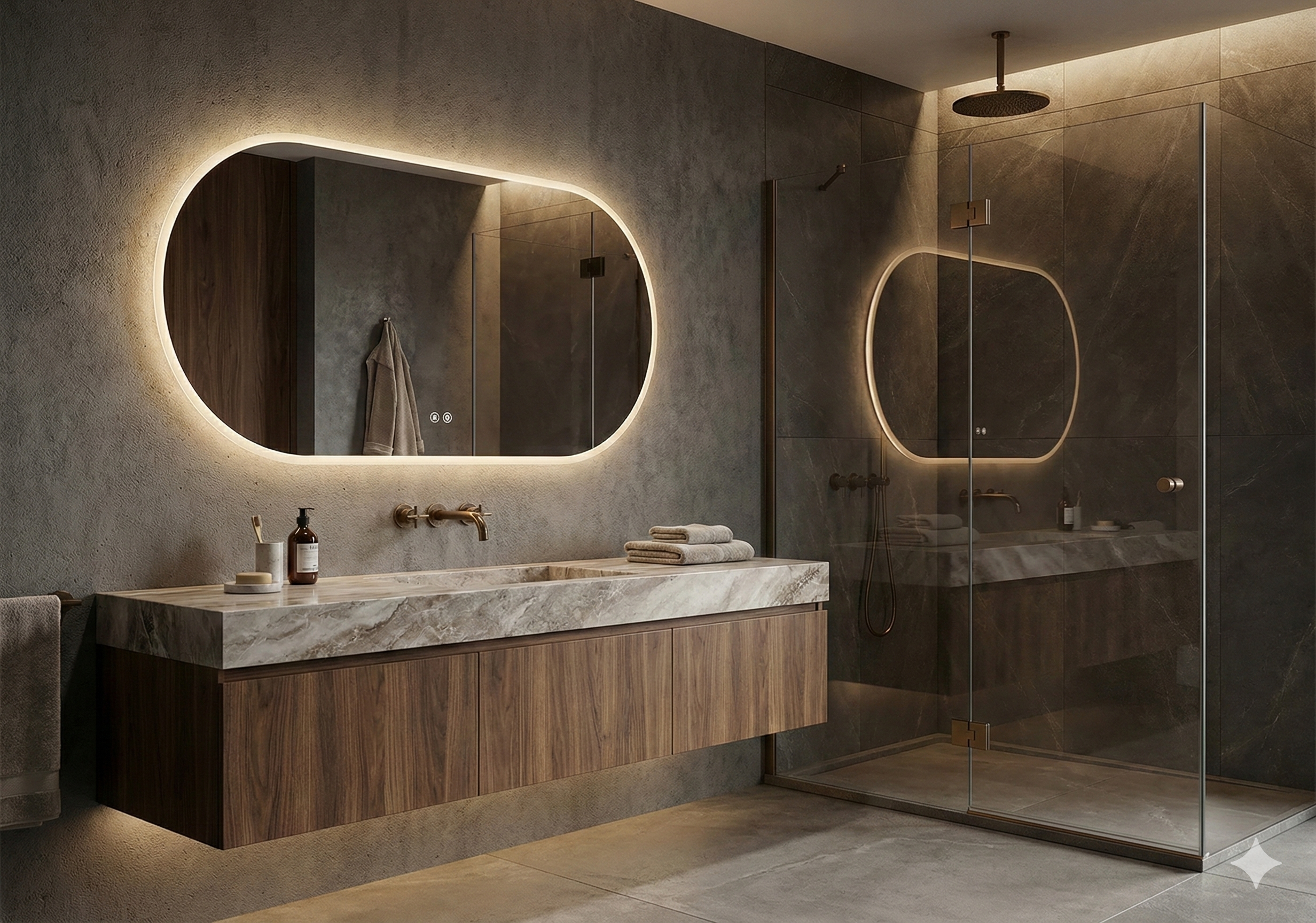 מראה מרחפת עם תאורת לד ב- 3 צבעים שונים ומפיג אדים