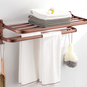 מתקן משולב למגבות | מדף + קולבים | 59 ס"מ אורך – 22 ס"מ עומק | רו זגולד מוברש | מק"ט 201RZ