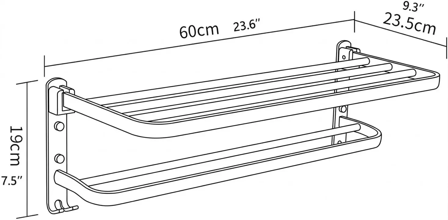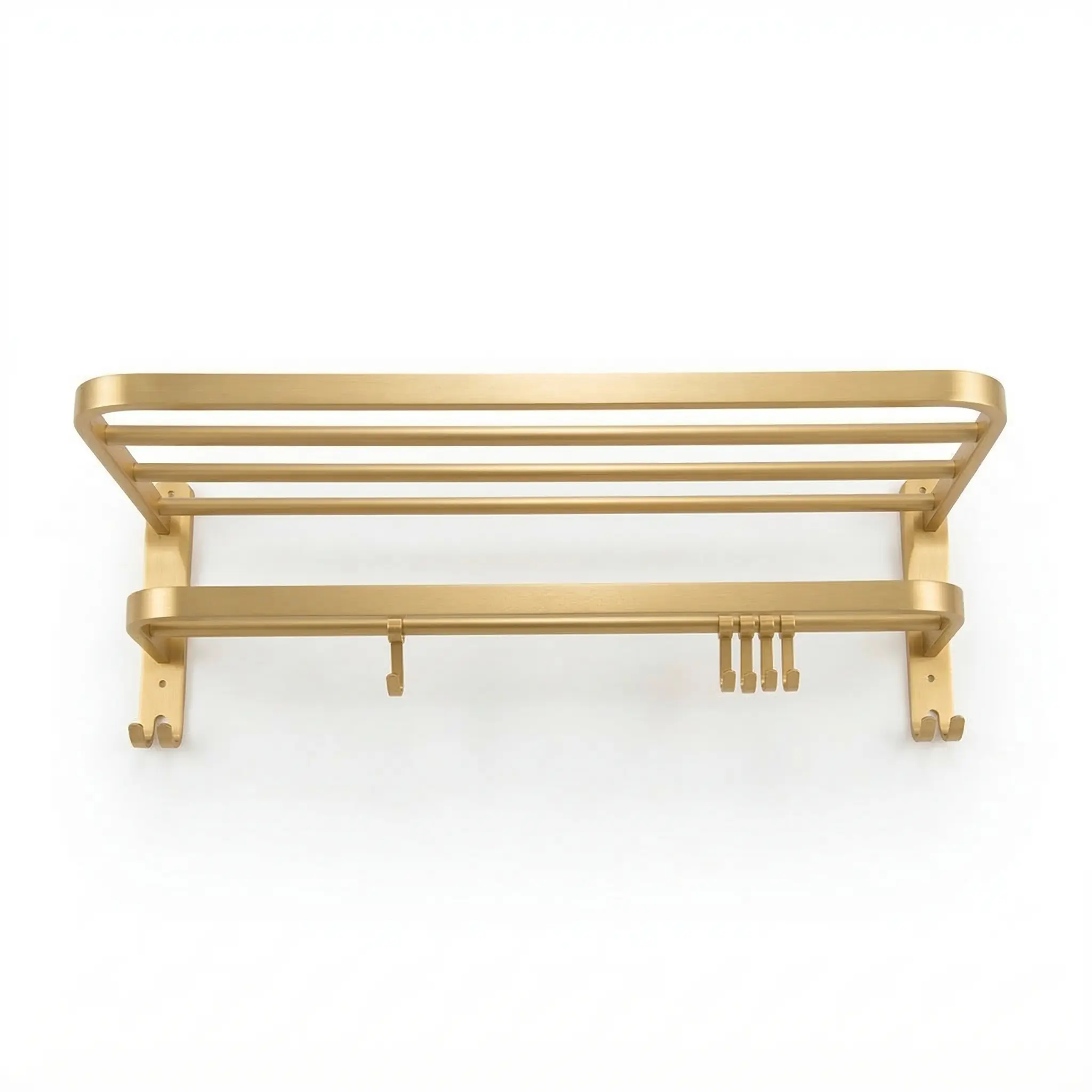 2 ביקורות עבור מתקן משולב מתקפל למגבות | מדף + קולבים באורך 60 ס"מ | ניתן גם להדבקה | זהב מוברש | מק"ט 201BG