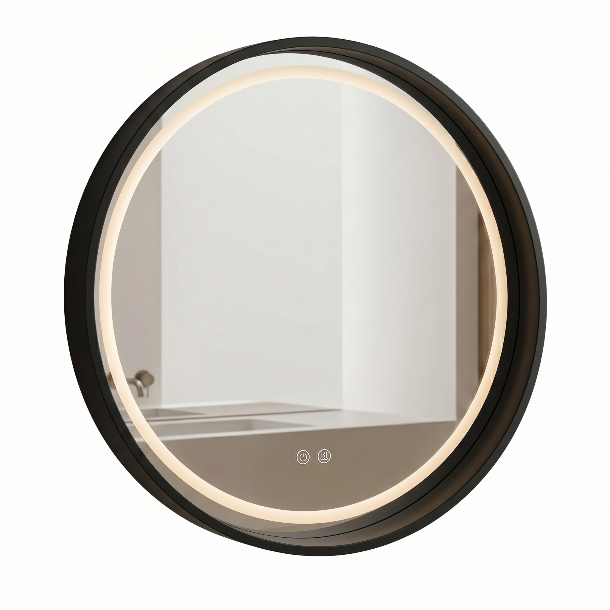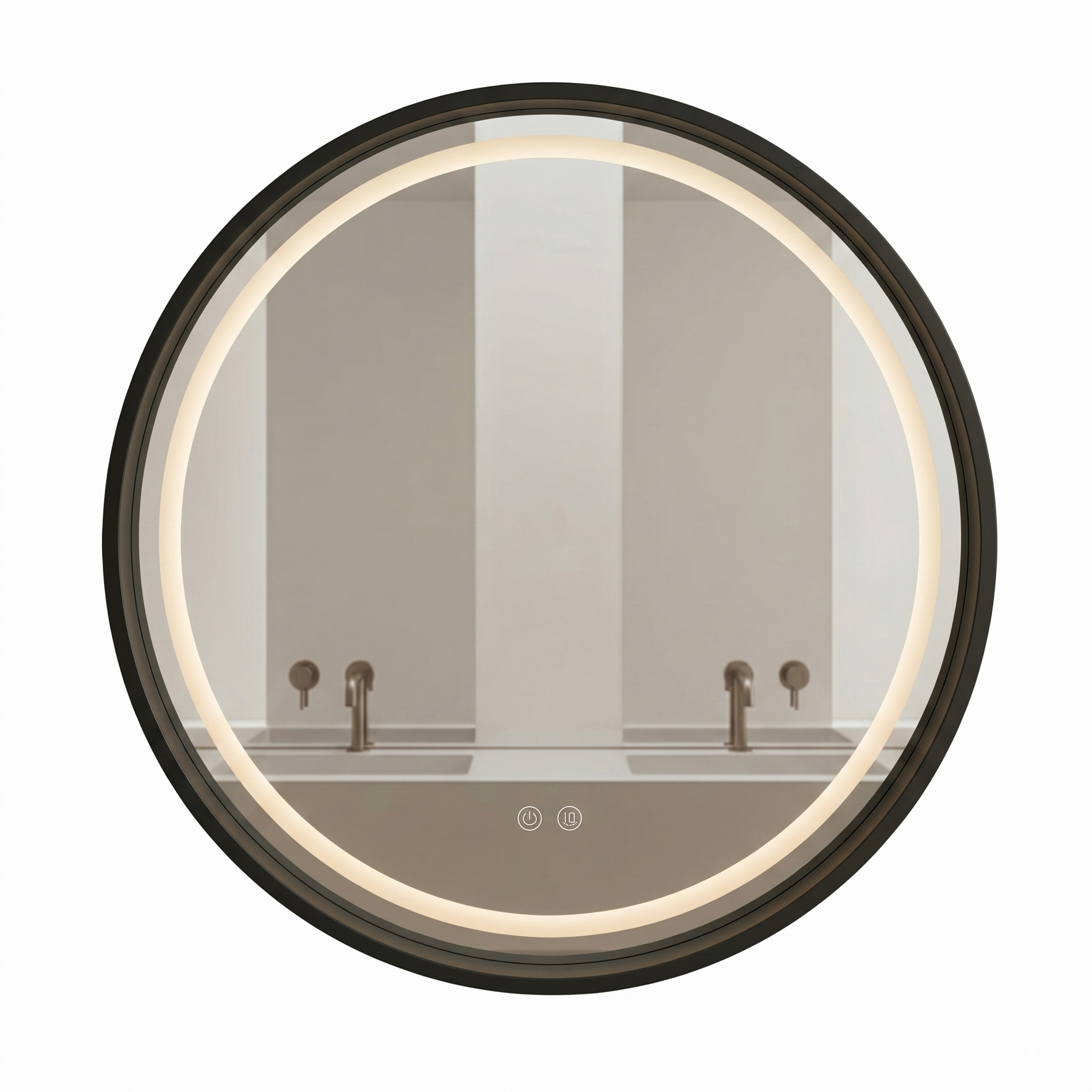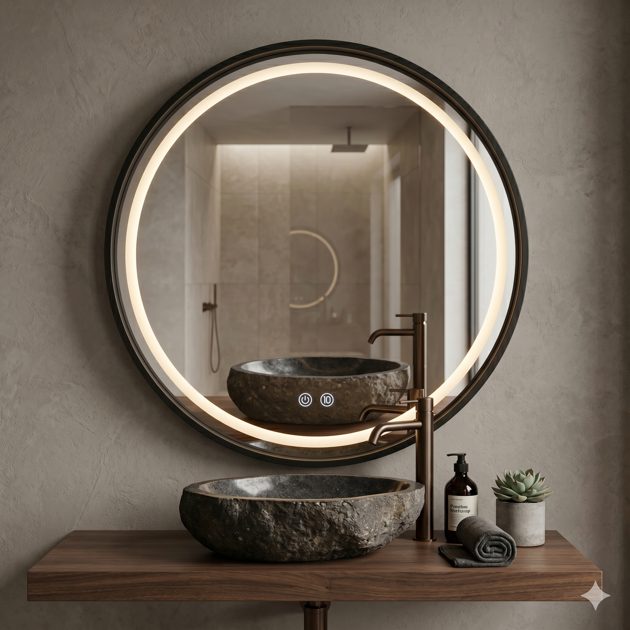 מראה מסגרת עץ | תאורת לד 3 מצבים & מפשיר אדים | תאורה קדמית | קוטר 80 מק"ט 1201BL