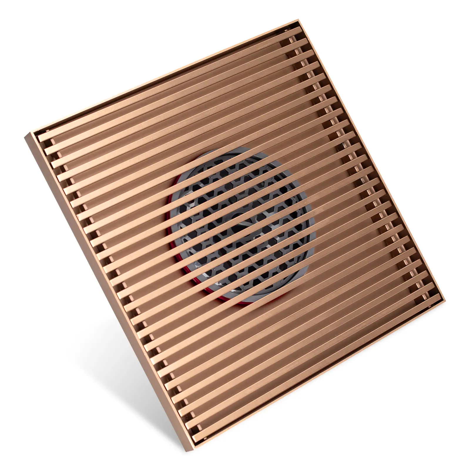 1 ביקורת עבור ניקוז מרובע "פסים" | 12/12 | פטנט חוסם ריחות וחרקים | רוז גולד מוברש | מק"ט 109RZ